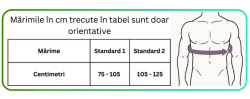 | Avertisment | Consultati intotdeauna medicul dumneavoastra inainte de a utiliza centura. Asigurati-va ca centura este ajustata corect si confortabil. O centura prea stransa poate restrictiona respiratia sau circulatia, in timp ce una prea larga nu ofera suportul necesar. Curatati centura conform instructiunilor producatorului. Daca simtiti vreun disconfort, durere sau furnicaturi, intrerupeti imediat utilizarea centurii si consultati medicul. Depozitati centura intr-un loc uscat si ferit de surse de caldura. |